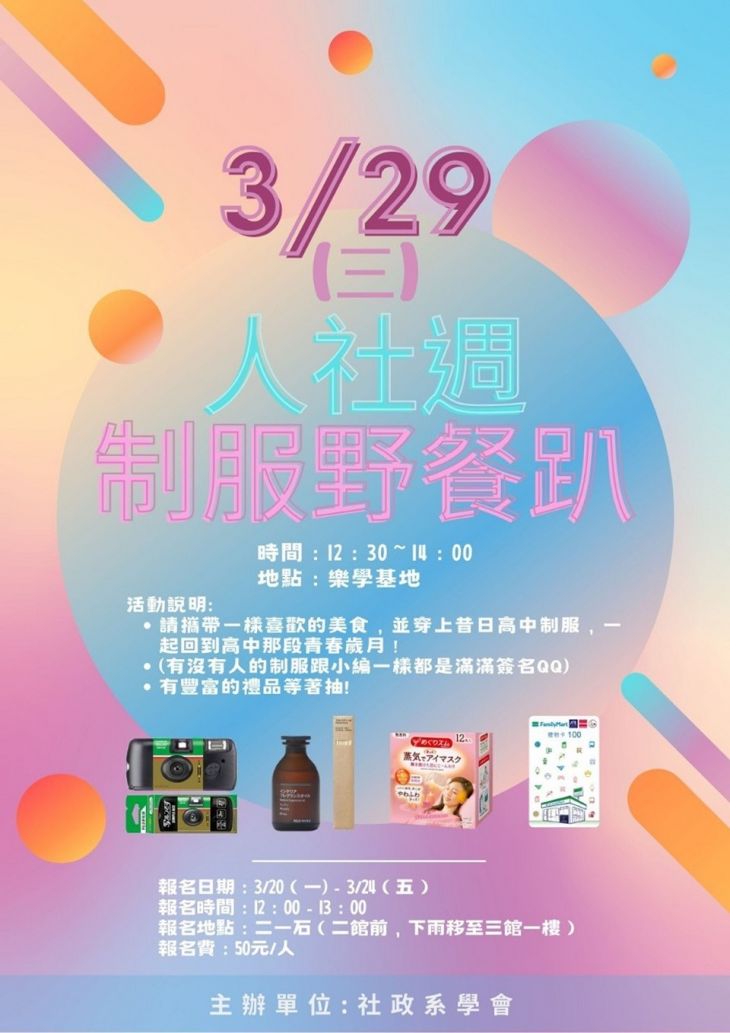 人社週活動-2023/3/29(三)12:30-14:00「制服野餐趴」