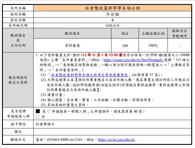 (網址:https://www.yzu.edu.tw/admissions/index.php/tw/yan-jiu-suo-zhao-sheng/shuo-bo-zhen-shi-ru-xue/699-113-1-0)