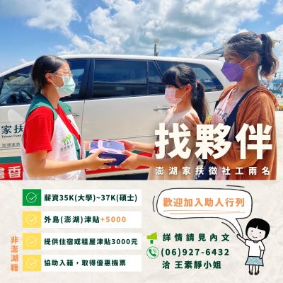 財團法人台灣兒童暨家庭扶助基金會澎湖分事務所社工人力招募